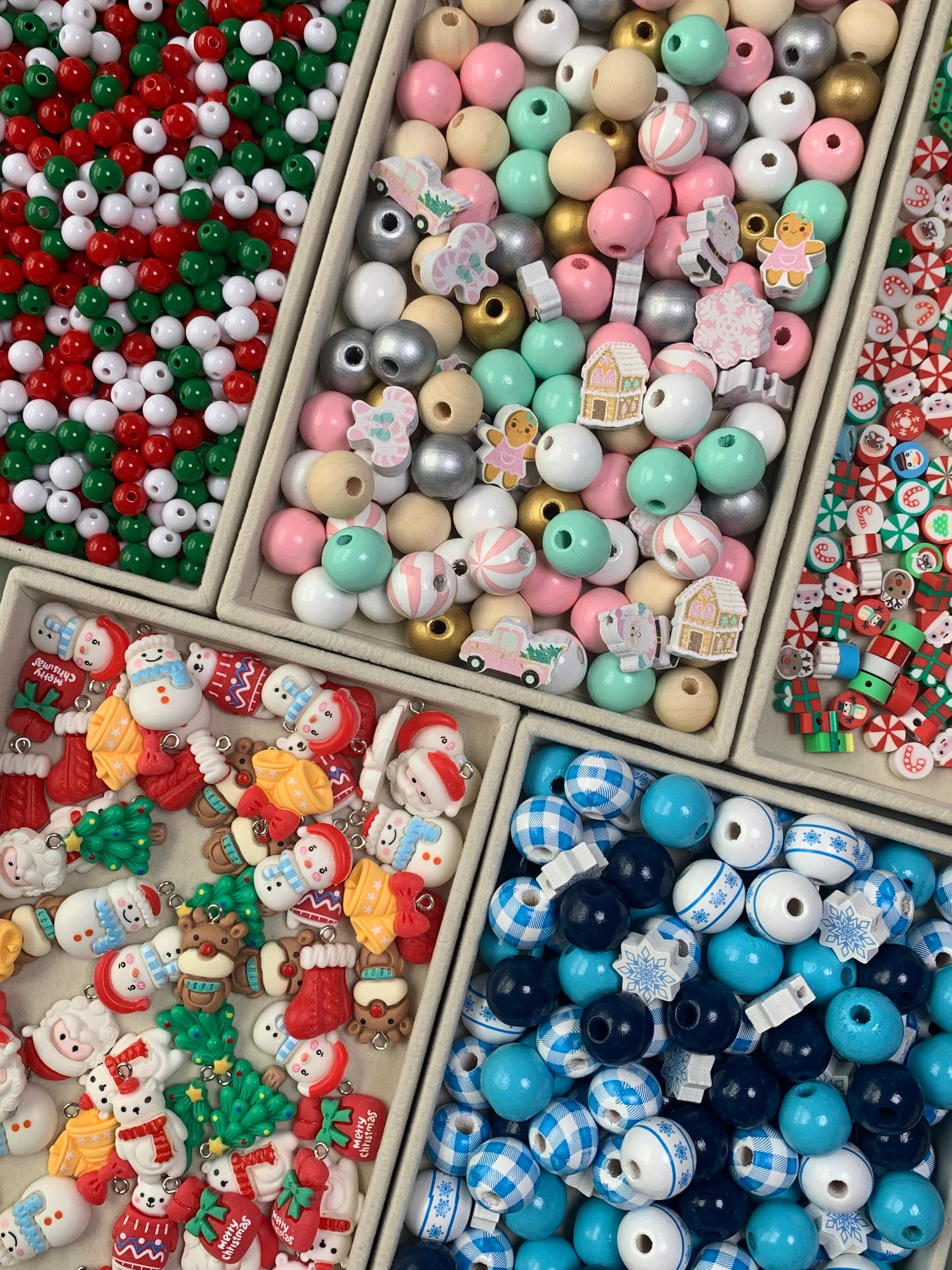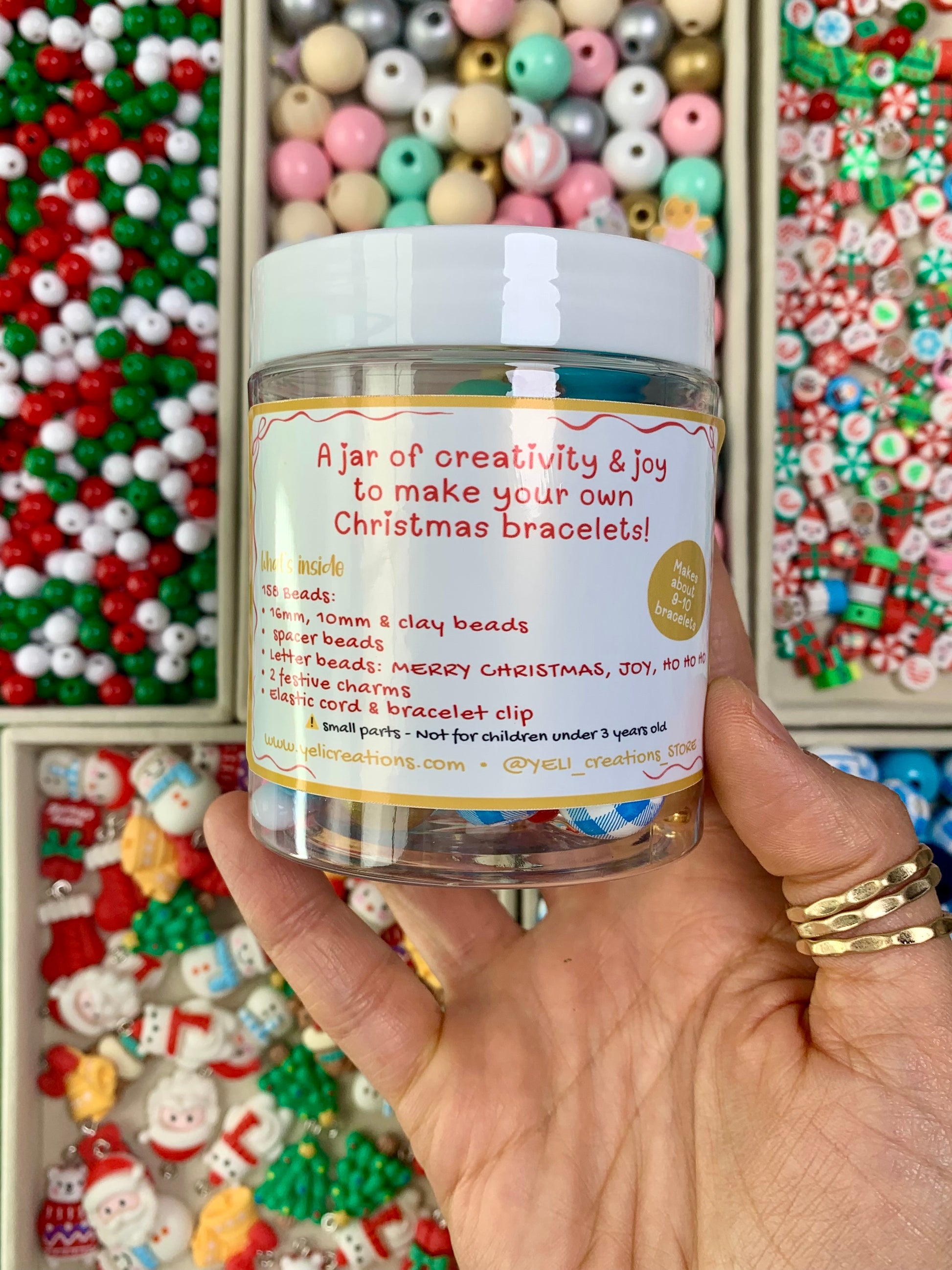 This festive bead jar is filled with a magical mix of Christmas-colored beads - bold reds and greens, winter blues, sparkling golds, cute charms, and holiday letter beads.