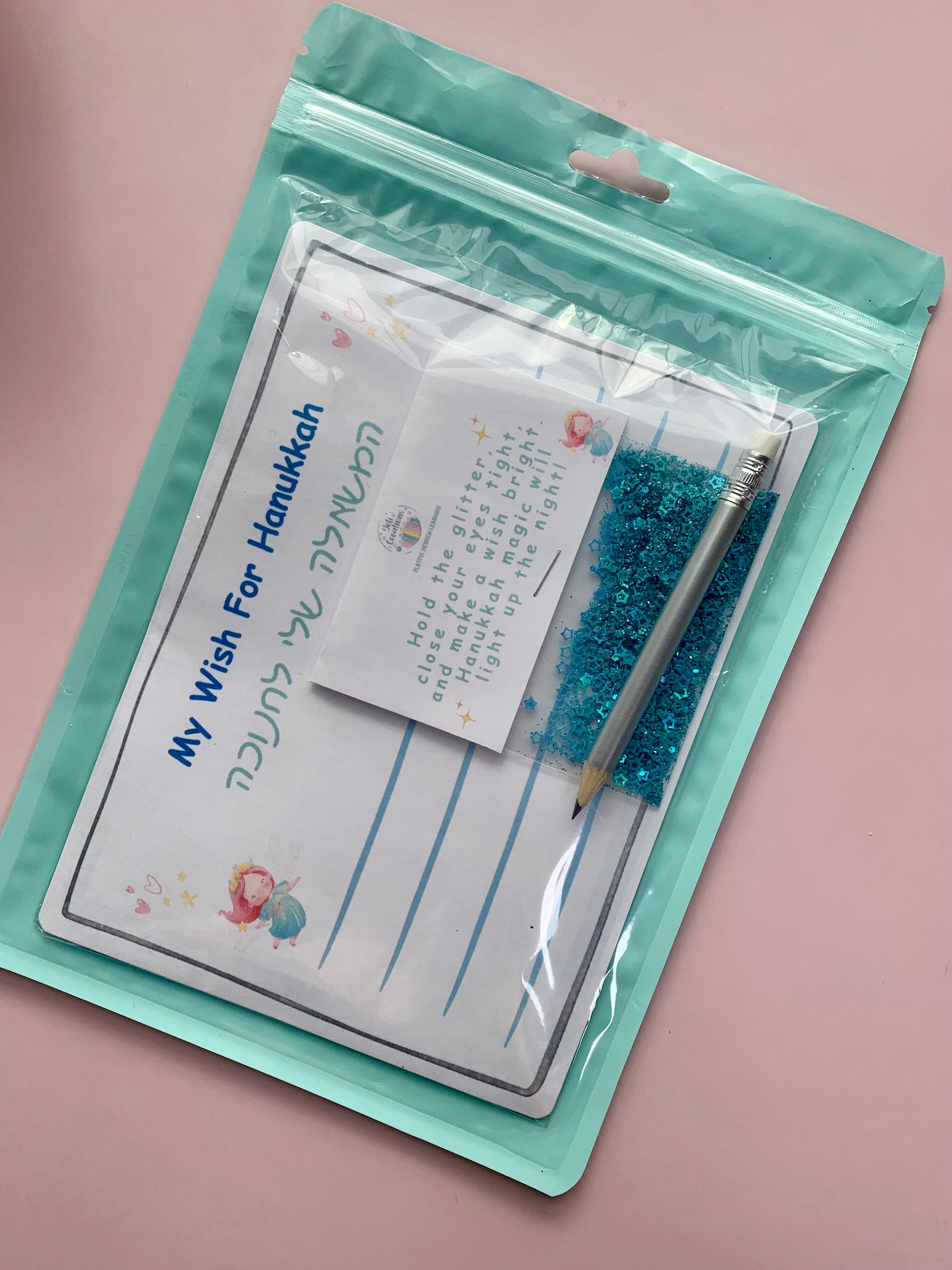 A mini magic pencil — perfectly sized for little hands, adding a fun, whimsical touch to writing their Hanukkah wish.